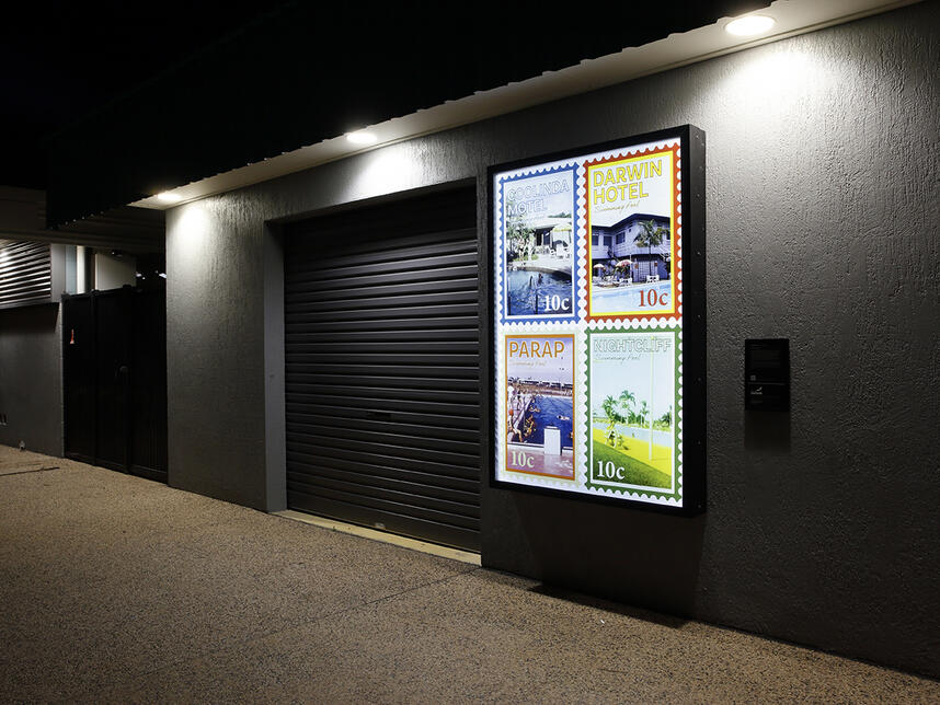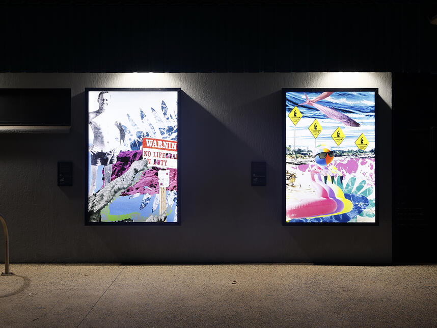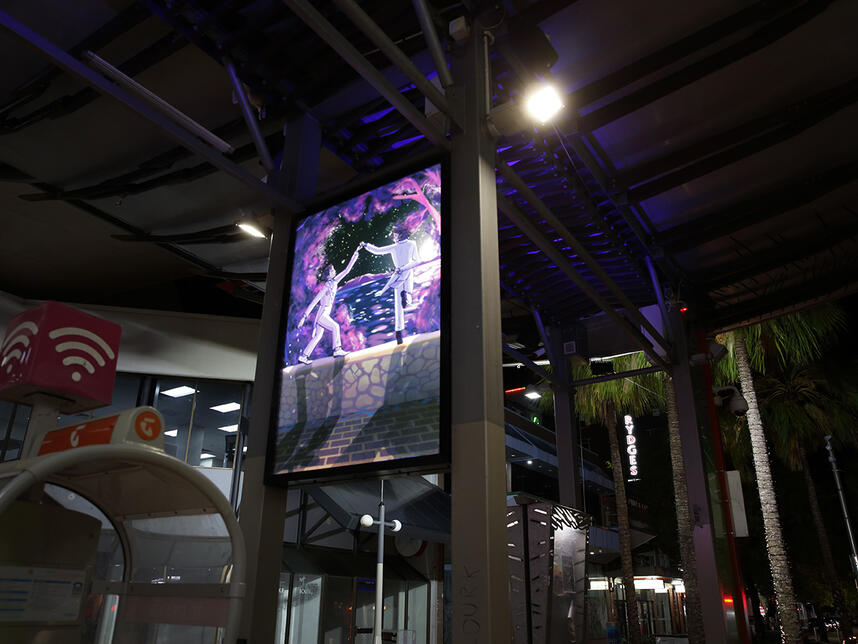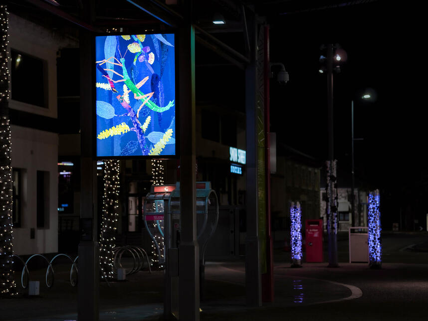 Night and Day showcases a fresh range of bright works from Charles Darwin University’s (CDU) Creative and Digital Arts students. Sarah Pirrie, our partnering exhibition curator, and CDU Creative and Digital Arts Coordinator has skilfully selected a collection of pieces that respond to the theme Night and Day from the artistic cohort of current digital media students. “Just like the lightboxes which illuminate both day and night our CDU Creatives have considered the thematic of Night and Day through engagement with site; storytelling and placemaking are attuned to personal histories and encounters with Darwin’s living environment”.