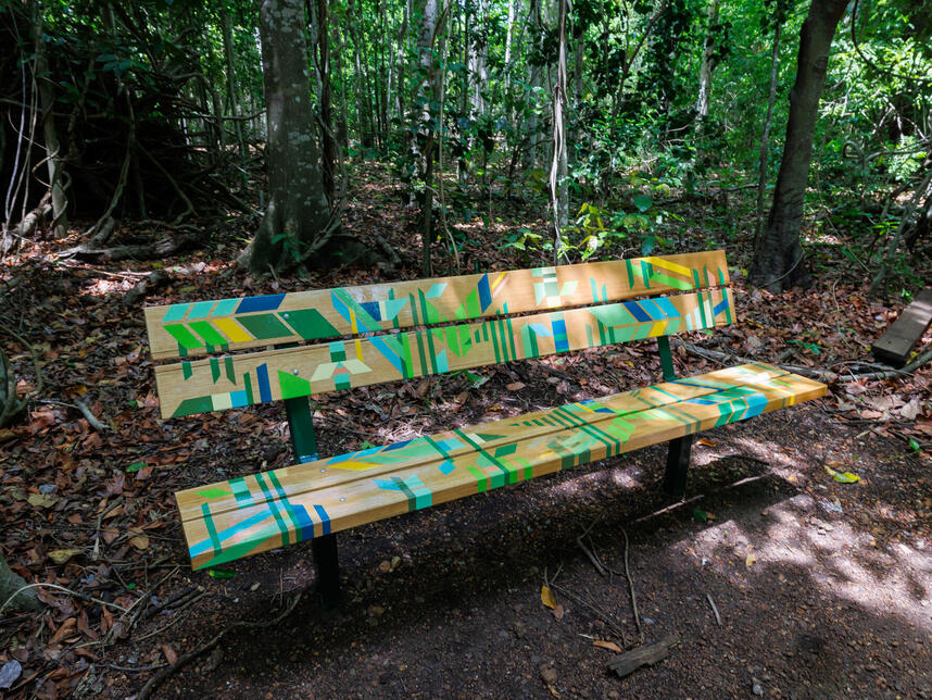 With the initial focus on sites in Fannie Bay and throughout East Point Reserve City of Darwin commissioned an extension of the project. Happy Place 2.0 saw further hand painted outdoor furniture at Dudley Point, Gun Turrets and Tower, Singh Park and the Monsoon Forrest Trail.