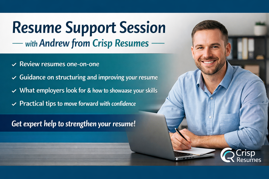 Join Andrew from crispresume.com.au for a practical, hands-on session designed to help you strengthen your resume with confidence.