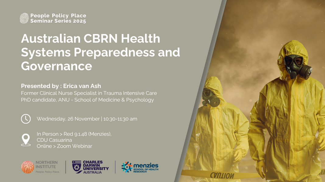 Northern Institute, in collaboration with Menzies School of Health Research, invites you to an insightful seminar: Australian CBRN Health Systems Preparedness and Governance