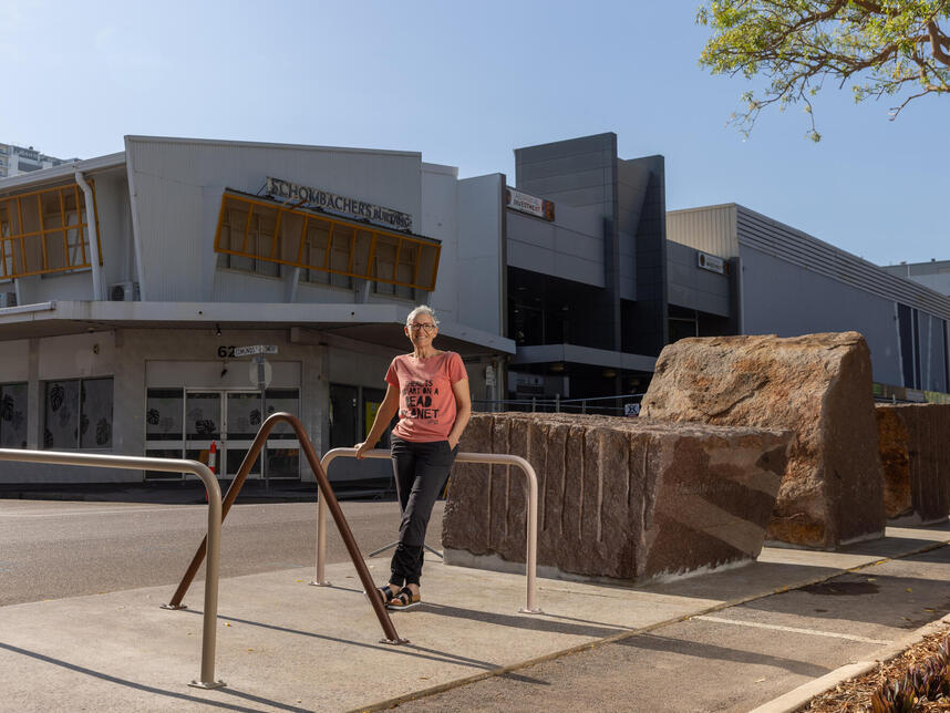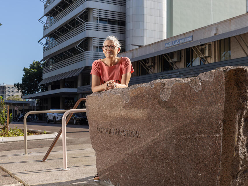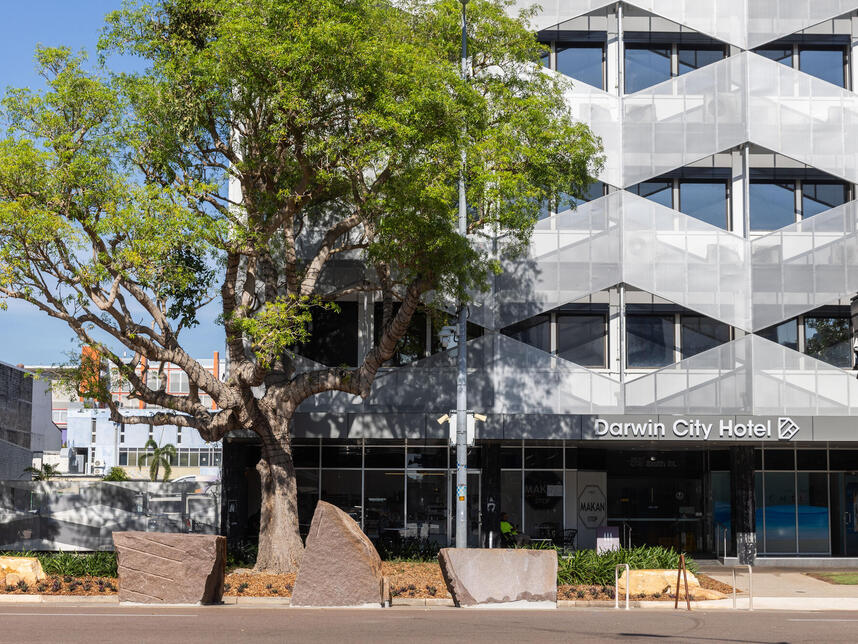 Draws attention to the geological material used in its creation, Mt Bundy granite, exploited in the construction of Darwin City.