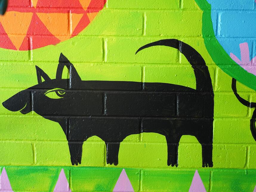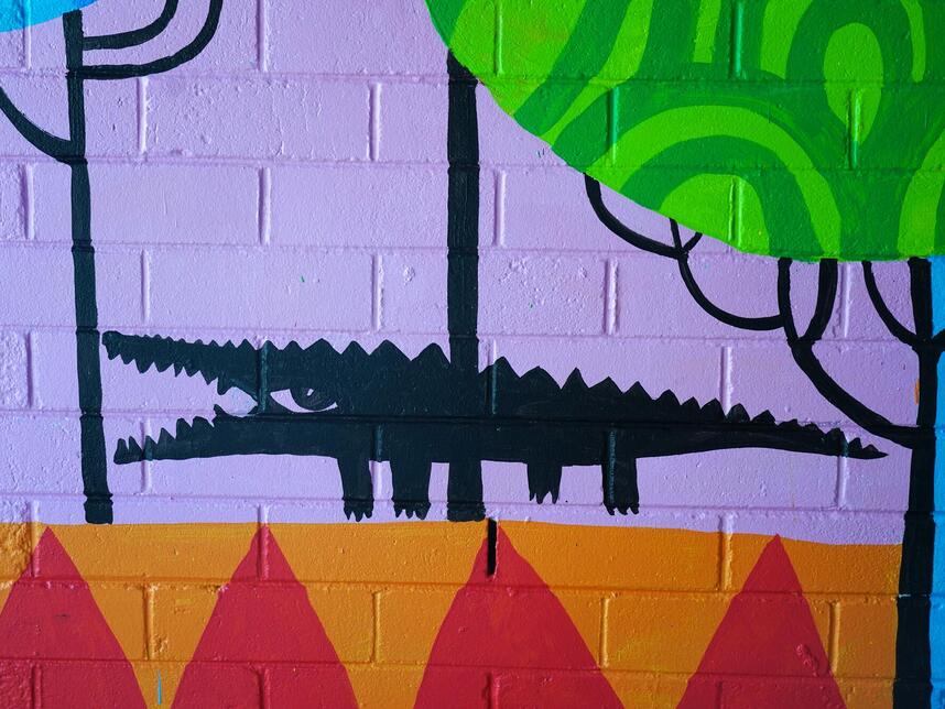 A stunning mural by local artist Marita Albers, bringing vibrant character to a much-loved community space.