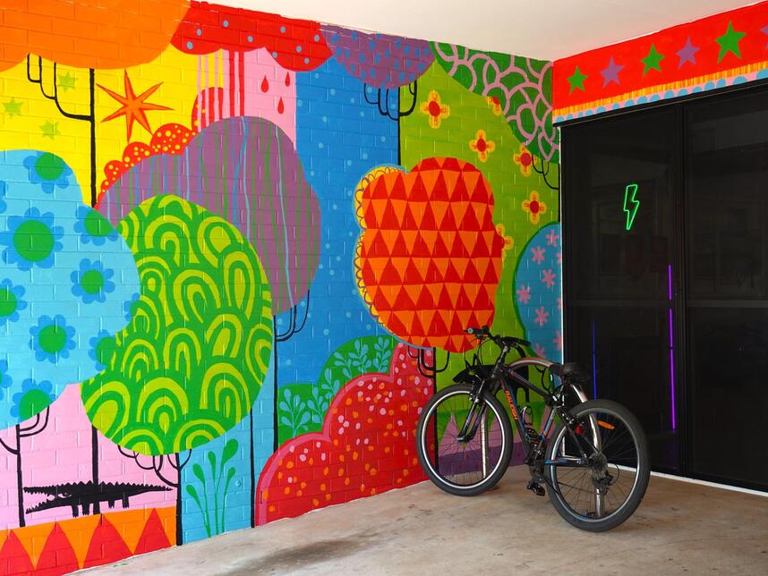 Transformed with a vivid new mural by acclaimed local artist Marita Albers, bringing colour and character to the popular community hub.